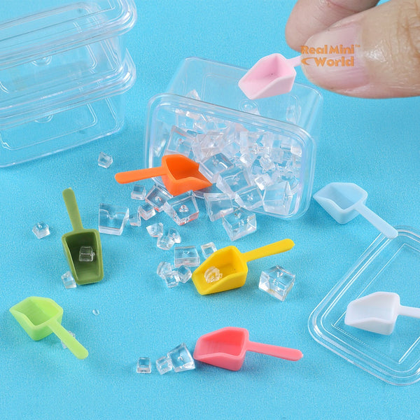 미니어처 아이스 큐브 용기와 스쿱으로 나만의 미니 세상을 시원하게 만들어 보세요! 미니어처 주방에 꼭 필요한 작은 얼음 조각 세트입니다. ❄️🧊✨