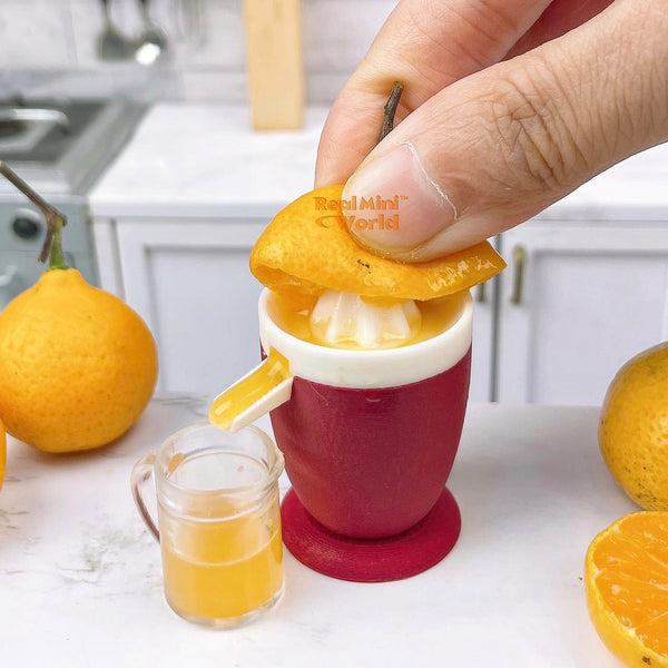 Feito à mão com carinho e atenção aos detalhes, este mini eletrodoméstico é perfeito para criar mini limonadas, caldas cítricas ou mocktails refrescantes. Ele não é apenas fofo — é realmente funcional, trazendo realismo e alegria a cada espremedura. Se você é apaixonado por comida em miniatura, culinária em miniatura e por construir uma cozinha em miniatura repleta de utensílios funcionais, este espremedor de cítricos vermelho está pronto para dar um toque especial à sua criatividade. 🍋✨